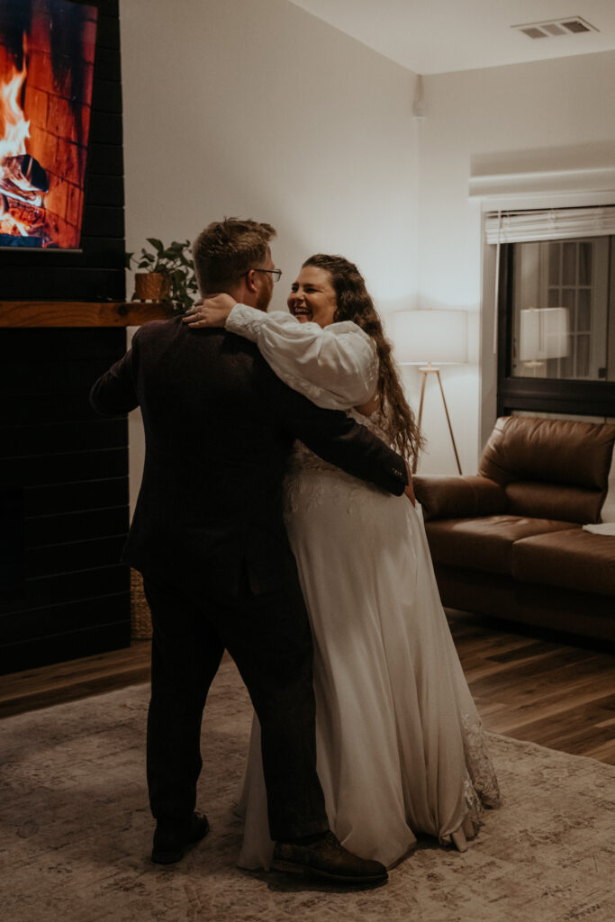 Kate and Tyler had their first dance in that cozy room, surrounded by the people who love them most. They toasted with champagne. They laughed and hugged and celebrated in a way that felt even more intimate than the original plan.